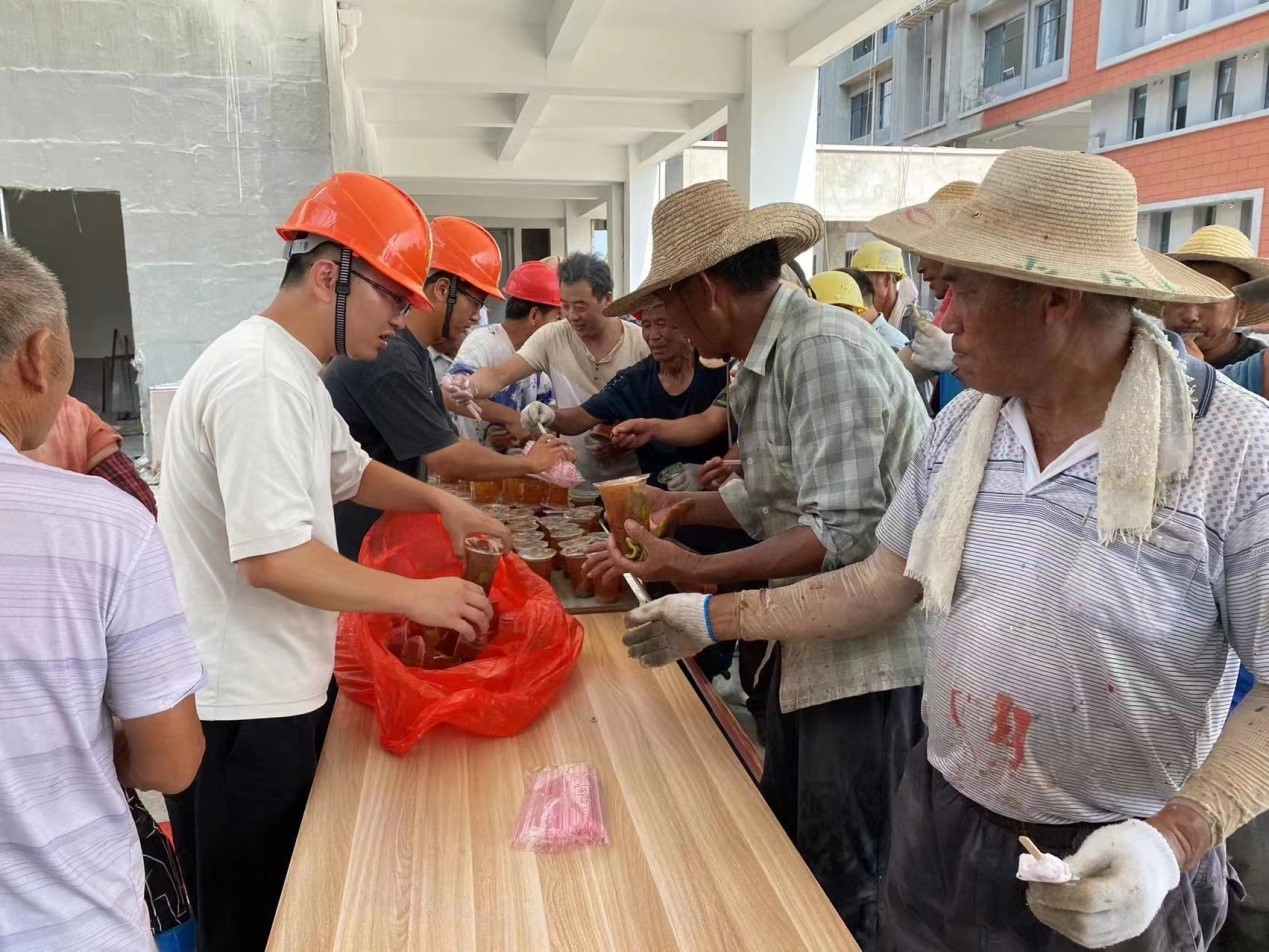 為積極響應(yīng)園區(qū)管委會領(lǐng)導(dǎo)的指示精神,嚴(yán)格落實高溫防暑保障、安全生產(chǎn)各項措施,楊總要求各施工班組要及時關(guān)注天氣氣溫變化,確保高溫天氣下安全作業(yè)不出差錯。在出現(xiàn)高溫預(yù)警的第一時間,就做好準(zhǔn)備,將仁丹、藿香正氣水、礦泉水和綠豆湯提前發(fā)放到現(xiàn)場管理人員及施工人員的手上。在第一次高溫達(dá)到40℃的時候出現(xiàn)了數(shù)名施工人員身體不適,項目部拿出備好的藥品冷飲,因處理及時,并未出現(xiàn)進(jìn)一步的傷害。充分證明有備無患,未雨綢繆的重要性。