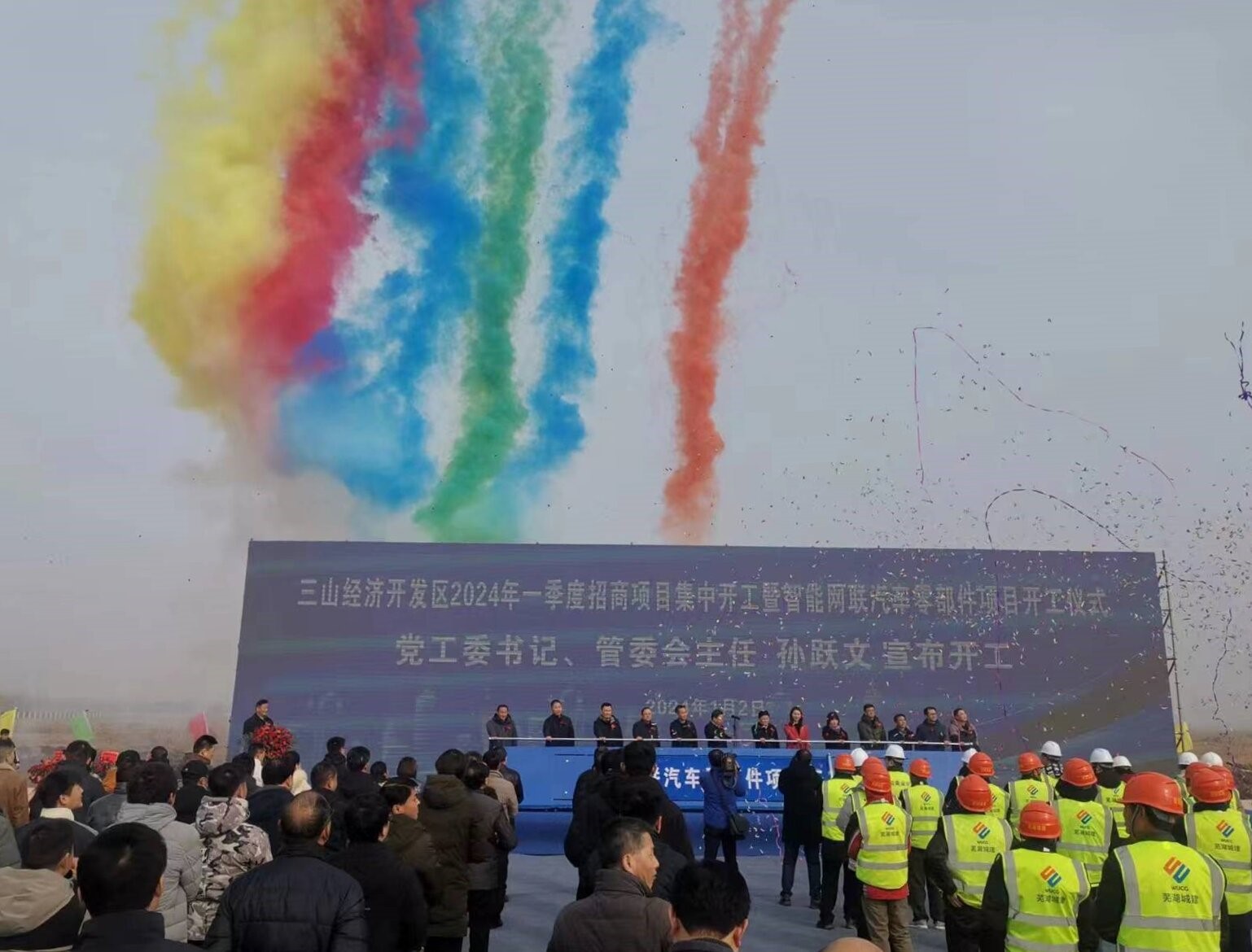 1月2日上午,蕪湖市三山區(qū)舉行三山經濟開發(fā)區(qū)2024年一季度招商項目集中開工暨智能網聯汽車零部件項目開工儀式,三山經濟開發(fā)區(qū)黨工委書記、管委會主任孫躍文,三山經濟開發(fā)區(qū)黨工委副書記、管委會常務副主任楊燕,三山經濟開發(fā)區(qū)黨工委委員、管委會副主任方序保,安徽中江城建集團董事長朱志福出席。
